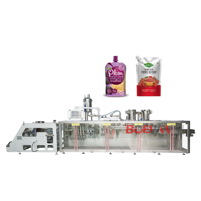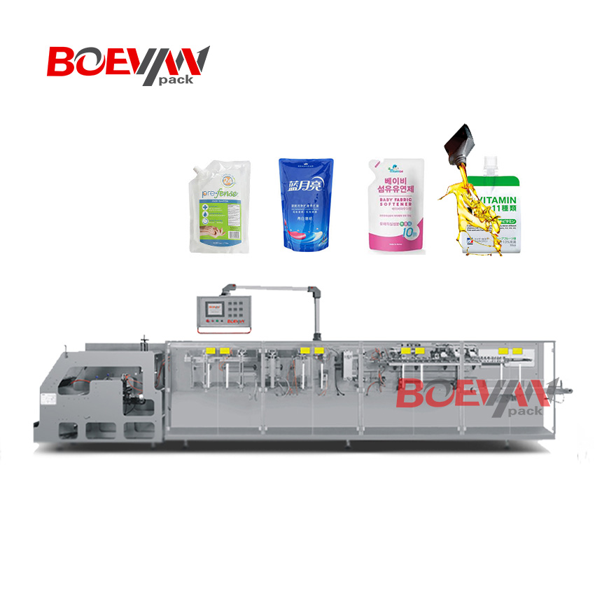 It is a horizontal ffs packing machine for liquid detergent liquid soap jelly water beverage drink juice packing machine with spout